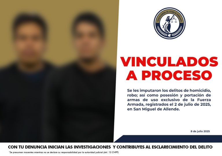 La Fiscalía General del Estado de Guanajuato informa sobre importantes avances en la investigación y sanción de delitos de extorsión agravada, logrando en días recientes sentencias condenatorias y vinculaciones a proceso en contra de varios imputados por estos delitos ocurridos en los municipios de Irapuato y León. En un procedimiento abreviado, MIGUEL ARTURO “N” y LUIS JORGE “N” fueron sentenciados por el delito de extorsión agravada, como resultado de un proceso judicial que derivó de hechos ocurridos en la ciudad de Irapuato. En el mes de octubre de 2025, un individuo ingresó a un negocio ubicado en el Bulevar Solidaridad y entregó una nota con un mensaje extorsivo. Acto seguido, el agresor y su acompañante huyeron a bordo de una motocicleta. Tras una rápida intervención de los elementos de la Secretaría de Seguridad Ciudadana, ambos fueron detenidos y se les aseguraron elementos relevantes para la investigación. Como resultado de la presentación de pruebas y tras haber aceptado la responsabilidad de los cargos imputados por el Ministerio Público, el Juez de Control emitió sentencia condenatoria en procedimiento abreviado. Por otro lado, en la ciudad de León se obtuvo la vinculación a proceso de LUZ GABRIELA “N” por su probable responsabilidad en el delito de extorsión agravada, cometido en agravio del propietario de un negocio en el Barrio del Coecillo, a quien le exigió por medio de amenazas, que le cediera parte de sus propiedades, así como una camioneta y la suma de doscientos mil pesos. Ante el temor de sufrir graves consecuencias, la víctima accedió a entregar el dinero solicitado. Tras la denuncia, la Fiscalía integró la carpeta de investigación correspondiente, presentando pruebas suficientes que llevaron al Juez de Control a vincular a proceso a LUZ GABRIELA “N”, quien deberá responder por su probable participación en este delito.