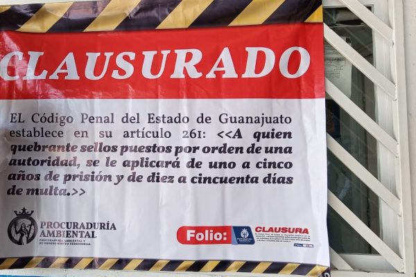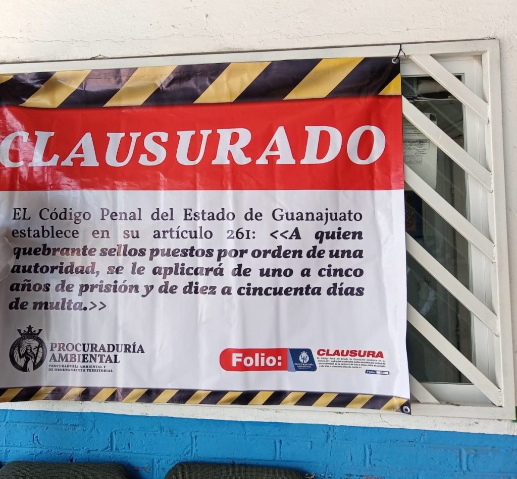 Clausura PAOT Centro de Verificación Vehicular en el municipio de Irapuato Mediante una denuncia, la PAOT clausura temporalmente el centro de verificación vehicular. Guanajuato, Gto, a 23 de noviembre de 2025.- La Procuraduría Ambiental y de Ordenamiento Territorial del Estado de Guanajuato mediante una denuncia, realizó la clausura temporal de un centro de verificación vehicular en el municipio de Irapuato, Guanajuato. La clausura temporal se realizó luego de que la PAOT recibió una denuncia por presuntas irregularidades en la operación del centro de verificación vehicular, por lo cual, personal de la dependencia estatal inició un expediente de inspección para acudir al sitio y revisar las condiciones en que opera. Derivado de la supervisión, se determinó hacer efectiva la medida de clausura temporal con la finalidad de evitar la operación y funcionamiento irregular de sus verificaciones vehiculares, así como suspender la expedición de constancias y engomados. La clausura temporal se mantendrá hasta en tanto, no exista evidencias que desvirtúen los hechos denunciados. Lo anterior a efecto de garantizar un medio ambiente sano, cuidando la calidad del aire para evitar afectaciones a la salud pública.