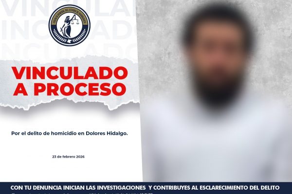 La Fiscalía General del Estado de Guanajuato en colaboración con la Secretaría Pública Municipal, logró la detención y obtuvo la vinculación a proceso penal de JOSÉ “N” alias “el wero menfis”, por su probable responsabilidad en el delito de homicidio calificado, derivado de hechos criminales ocurridos en Dolores Hidalgo. Este sujeto es considerado uno de los principales generadores de violencia en el municipio. De acuerdo con los datos de prueba, el 17 de febrero de 2025, entre las 14:00 y las 14:50 horas, la víctima se encontraba en la colonia Independencia, en compañía de dos personas cuando un vehículo se aproximó y de él descendió “el menfis”, quien, sin mediar palabras, accionó un arma de fuego en repetidas ocasiones en contra del ofendido. Tras la agresión, el imputado subió al vehículo y se retiró del sitio. La víctima quedó tendida sobre la vía pública y, pese a los esfuerzos posteriores perdió la vida en el lugar a consecuencia de las heridas producidas por los disparos. Momentos después, elementos de la policía preventiva del municipio lograron detener al presunto agresor. De manera paralela, un agente del Ministerio Público de la Fiscalía Regional “D”, encabezó las diligencias correspondientes, mientras agentes de Investigación Criminal y peritos recabaron testimonios, entre otros elementos técnicos y científicos que permitieron establecer la probable participación del imputado. Con base en los datos de prueba expuestos en audiencia, el Juez resolvió dictar auto de vinculación a proceso en contra de JOSÉ “N” por el delito de homicidio calificado, además de imponer la medida cautelar de prisión preventiva y fijar el plazo para el cierre de la investigación complementaria.