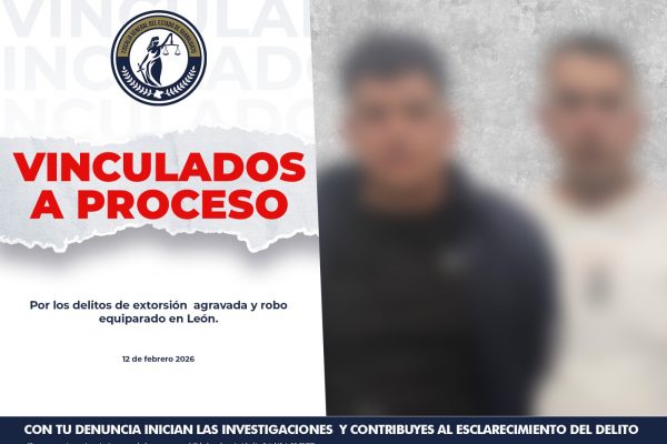 Dos presuntos delincuentes fueron detenidos y vinculados a proceso penal por los delitos de extorsión agravada y robo equiparado. Los imputados, identificados como SERGIO ALBERTO “N” y HUGO CRISTOPHER “N”, fueron detenidos tras un operativo táctico derivado de una denuncia en la ciudad de León. Los hechos que motivaron la acción ministerial por parte de la Fiscalía Regional “A”, se originaron cuando el propietario de un negocio comenzó a recibir mensajes de texto donde los imputados, ostentándose como miembros de un grupo delictivo, le exigían el pago de una fuerte suma de dinero a cambio de permitirle continuar con sus actividades comerciales. En respuesta, la Agencia de Investigación Criminal desplegó un operativo para detener a los presuntos extorsionadores, quienes viajaban a bordo de una motocicleta, la cual, al ser revisada, presentaba el número de serie alterado. Tras el cierre de las diligencias iniciales, se llevó a cabo la audiencia ante el Juez de Control, donde se calificó de legal la detención y se dictó el auto de vinculación a proceso por los delitos de extorsión agravada, así como por robo equiparado. Además se les impuso la medida cautelar de prisión preventiva durante el tiempo que dure el proceso. Asimismo, el órgano jurisdiccional otorgó un plazo para el cierre de la investigación complementaria, periodo en el cual se fortalecerán las pruebas para que los responsables reciban la sentencia correspondiente conforme a derecho.