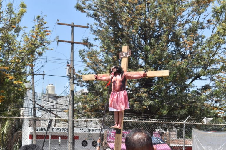 Foto José Juan Ramirez Como ya es tradición este Viernes Santo se realizó el Viacrucis Viviente en el templo de la Sagrada Familia ante cientos de familias que acuden año con año a presenciar este evento religioso, como parte de las celebraciones de la Semana Santa. El sacerdote Emmanuel Pérez Alonso estuvo presente en esta representación que año con año, se realiza por un grupo de setenta vecinos que representaron los diferentes personajes de la PasióMuerte de Cristo que reúne a un gran número de personas no solo vecinas del lugar, de diferentes puntos de la ciudad que acuden año con año a presenciar esta representación.
