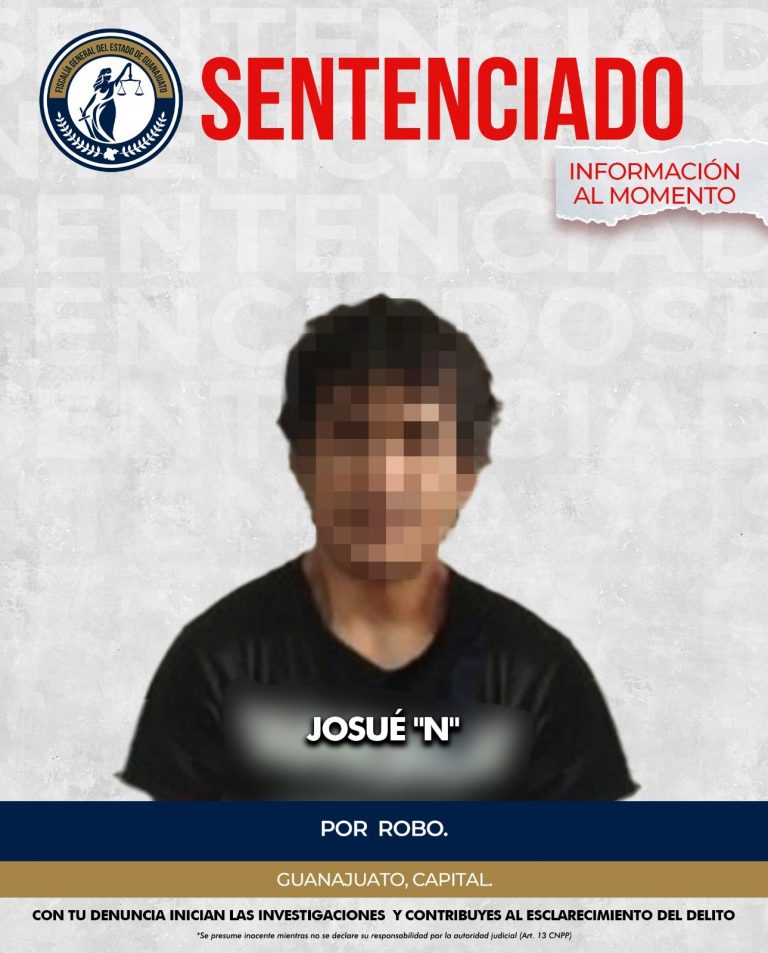 De acuerdo con la investigación, el 14 de enero de 2024, antes de las 16:00 horas, el sentenciado ingresó a las instalaciones de la Secretaría de Finanzas, Inversión y Administración Pública Centralizada, ubicadas en la colonia Paseo de la Presa, en la ciudad de Guanajuato, cuando estas se encontraban cerradas. Una vez en el interior, sustrajo diversos bienes del área correspondiente a la Subprocuraduría Fiscal de Consultoría y Normatividad, entre ellos tres monitores, tres teclados, dos cargadores, un mouse y cableado diverso. Posteriormente, dichos objetos fueron ofrecidos a distintas personas para su comercialización. Tras la integración de la carpeta de investigación y su judicialización, el Ministerio Público aportó los elementos de prueba que permitieron sustentar la responsabilidad penal del imputado y concluidas las etapas procesales, el acusado reconoció su participación en los hechos, por lo que el órgano jurisdiccional emitió sentencia condenatoria mediante procedimiento abreviado. Como resultado, se le impuso a JOSUÉ “N” una pena privativa de la libertad por el delito de robo. Asimismo, le fueron negados los beneficios sustitutivos en virtud de su calidad de reincidente. La Fiscalía General del Estado de Guanajuato reafirma su compromiso de combatir los delitos patrimoniales y garantizar la procuración de justicia con apego a la legalidad.