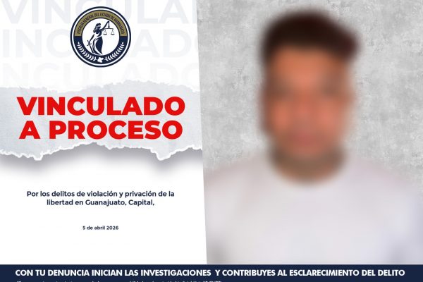 La Fiscalía General del Estado de Guanajuato, a través de su actuación firme y profesional, logró que ANTONIO JOSAFAT “N” permanezca en prisión, imputado por agredir sexualmente a una mujer y privarla de su libertad en la capital del estado. De acuerdo con la investigación, los hechos ocurrieron el 27 de marzo de 2026, aproximadamente a las 06:00 horas, cuando la víctima ingresó a un bar ubicado en la calle Alonso, con la intención de utilizar el sanitario. En ese lugar fue agredida sexualmente por el imputado, quien posteriormente la privó de su libertad, colocándola en una situación de total vulnerabilidad. La agente del Ministerio Público de la Fiscalía Especializada en Investigación de Delitos Cometidos en Contra de Mujeres por Razones de Género FEIDEM desarrolló una investigación sólida con perspectiva de género, integrando datos de prueba contundentes que permitieron sustentar la imputación. Estos elementos fueron presentados ante el Juez, quien determinó vincular a proceso penal al imputado por los delitos de violación y privación de la libertad. Como medida cautelar, se le impuso prisión preventiva oficiosa, por lo que permanecerá en reclusión durante el desarrollo del proceso, garantizando así la protección de la víctima y de la sociedad. Este resultado refleja el compromiso de la Fiscalía con la defensa de los derechos de las mujeres y el combate frontal a la violencia de género. Cada acción emprendida fortalece la confianza ciudadana y contribuye a construir entornos más seguros, donde las víctimas encuentran respaldo, justicia y acompañamiento. La Fiscalía General del Estado reitera que continuará actuando con firmeza, sensibilidad y cercanía social, asegurando que ningún acto de violencia quede impune y que la justicia represente un verdadero beneficio para la sociedad
