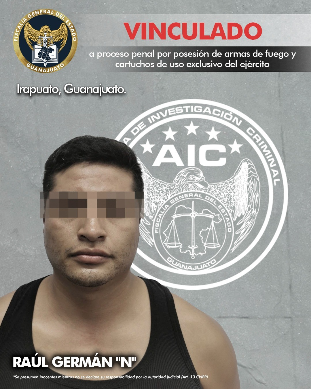 La investigación jurídica del Ministerio Público en coordinación con el trabajo táctico y de inteligencia de la Agencia de Investigación Criminal, permitieron que el detenido fuera llevado ante la autoridad competente, donde fue vinculado a proceso penal por el delito de posesión de armas de fuego y cartuchos de uso exclusivo del ejército.