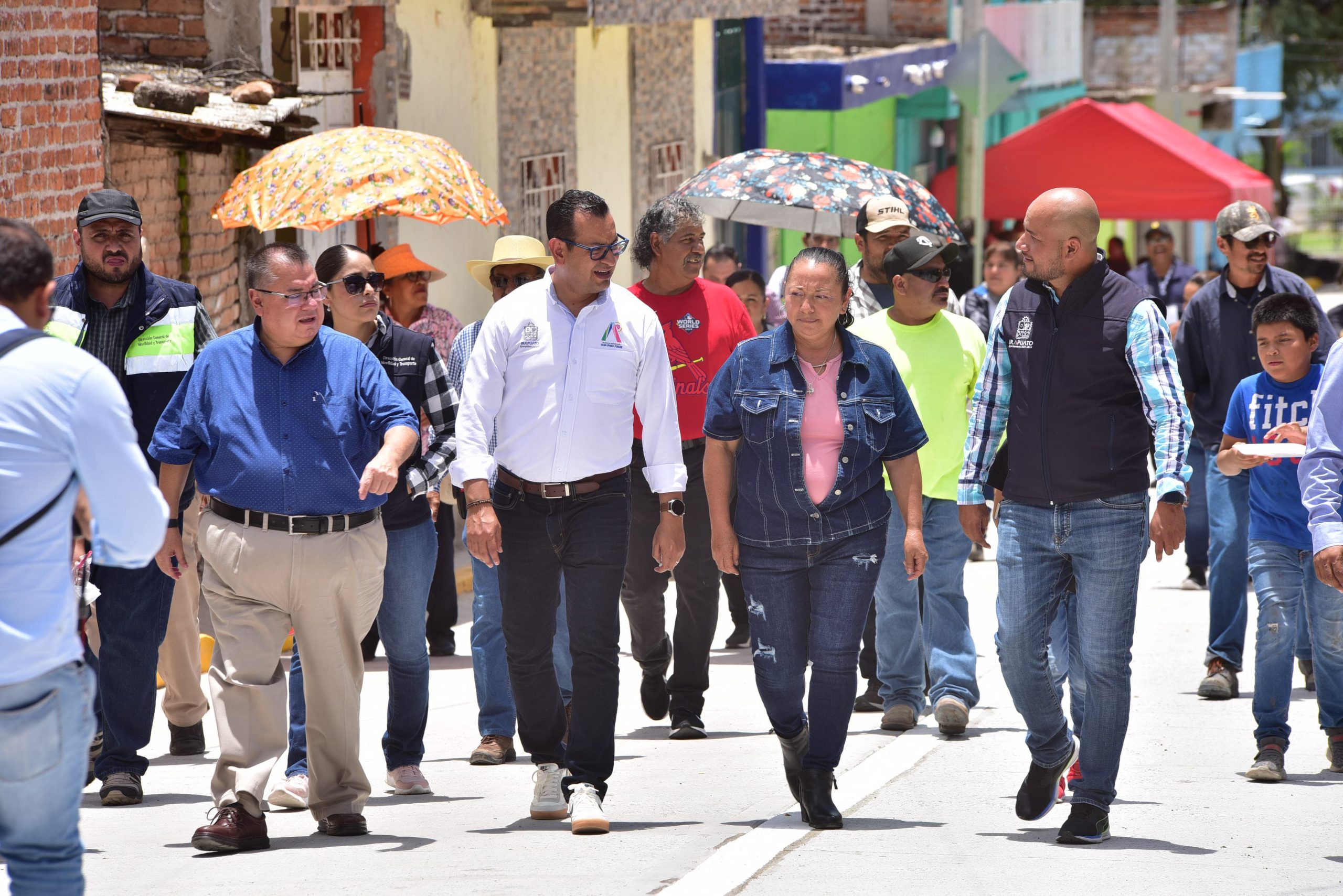 Esta obra se realiza con una inversión de más de 11 millones de pesos y comprende del tramo de la calle Camino de la Plata a Fray Juan de San Miguel; se entregará con rehabilitación del drenaje pluvial y sanitario, señalética, arbolado e iluminaci