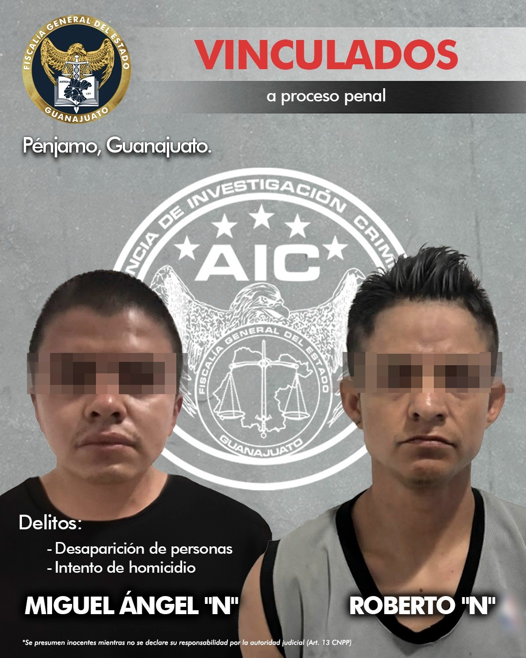 Pénjamo, Gto. 19 de agosto de 2024.- Con elementos de prueba, la Fiscalía de Guanajuato logró que MIGUEL ÁNGEL “N” y ROBERTO “N”, fueran vinculados a proceso penal y permanezcan encarcelados por los delitos de desaparición de personas y homicidio en grado de tentativa.