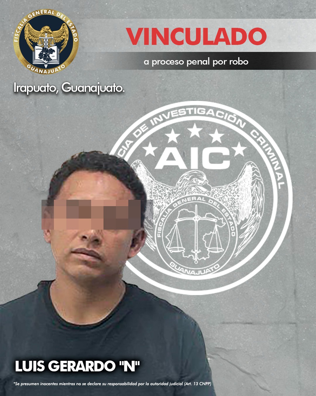 Irapuato, Gto. 19 de agosto de 2024.- La Fiscalía de Guanajuato presentó las pruebas que acreditan la responsabilidad de LUIS GERARDO “N”, en el delito de robo.