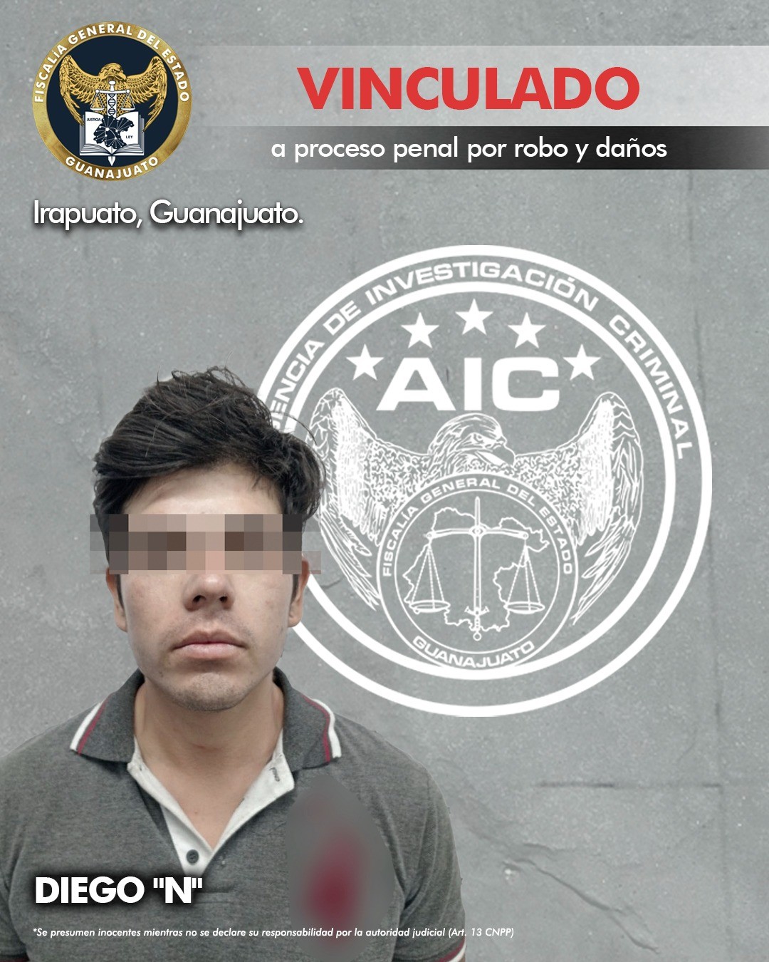 Irapuato, Gto. 17 de octubre de 2024.- Acusado por el robo de un vehículo, un sujeto fue detenido y vinculado a proceso penal en el municipio de Irapuato. La Fiscalía de Guanajuato acreditó la presunta responsabilidad de este joven, quien, con arma blanca amenazó y despojó a una víctima de su unidad.