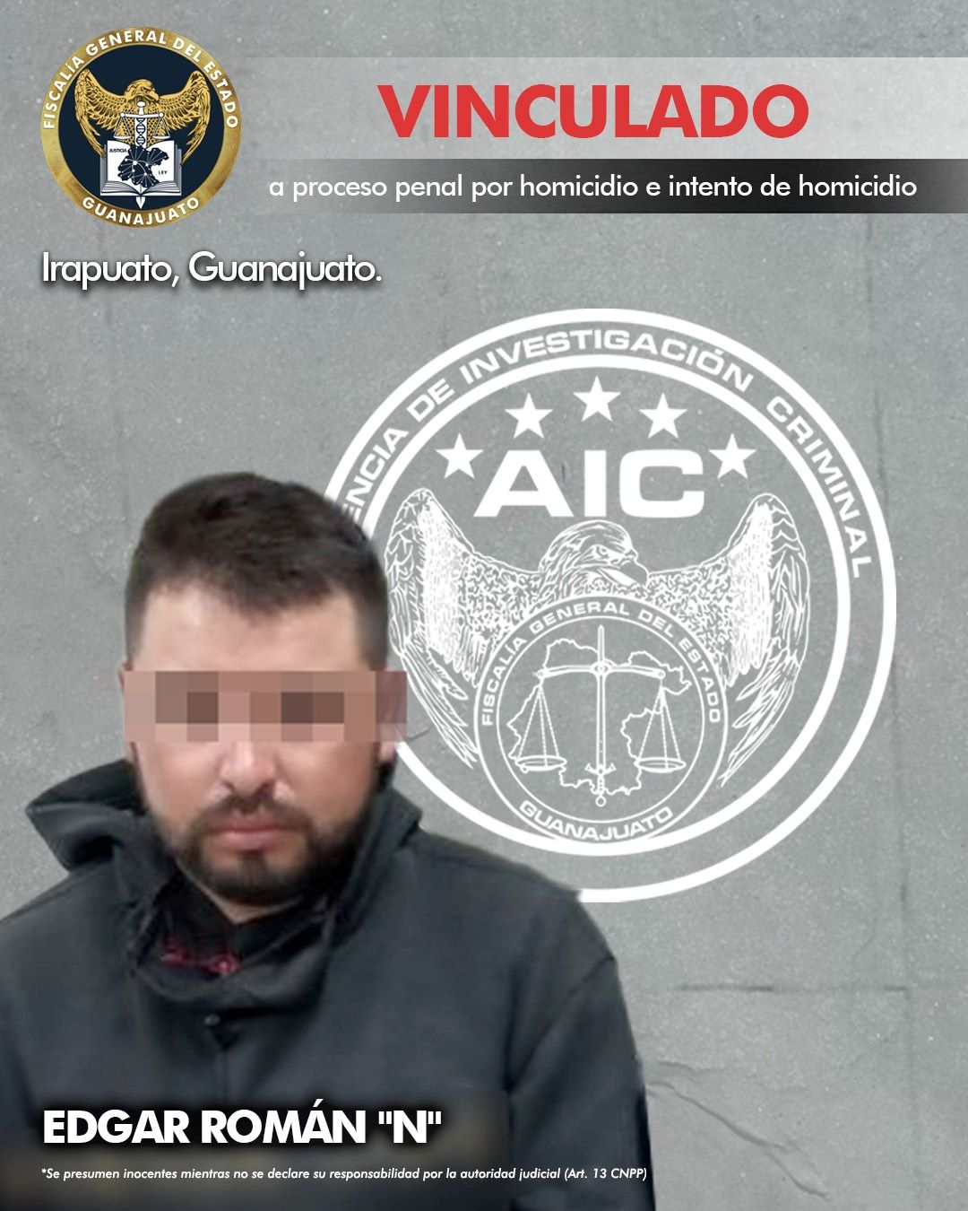 Irapuato, Gto. 26 de octubre de 2024.- La Fiscalía de Guanajuato aportó datos de prueba para obtener una nueva vinculación a proceso penal en contra de EDGAR ROMÁN “N”, presunto responsable del homicidio de tres hombres y una mujer, además de atentar contra la vida de una menor de edad, en la colonia Emiliano Zapata III.