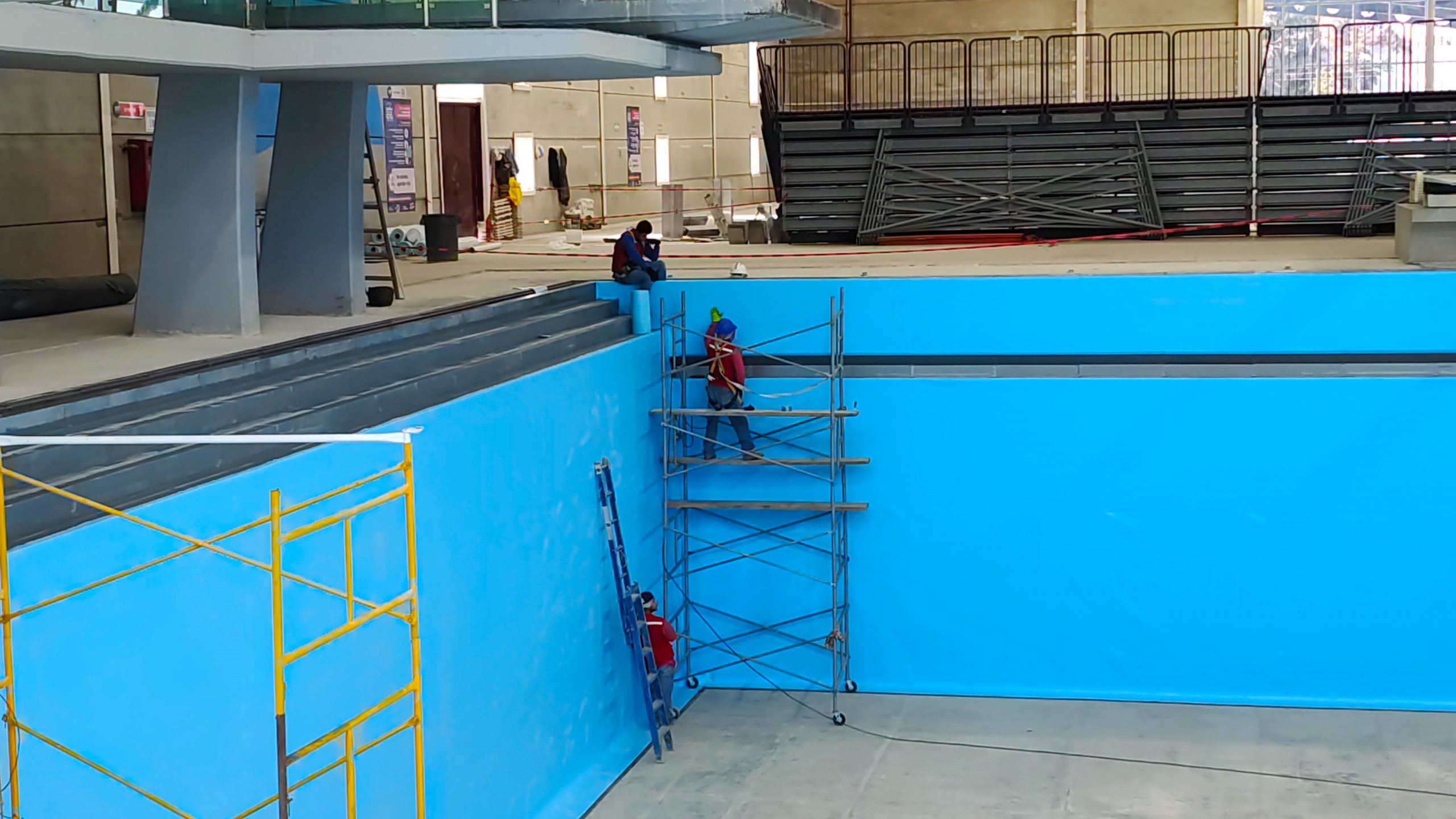 Por su parte, la subsecretaria Marcela Sámano detalló que, en esta primera etapa de la rehabilitación del centro acuático del Macrocentro Deportivo Valenciana, se trabaja en la rehabilitación de la alberca olímpica y de la fosa de clavados, con la sustitución de los paneles de acero de ambas albercas, así como en la instalación de nuevos equipos en casa de máquinas.