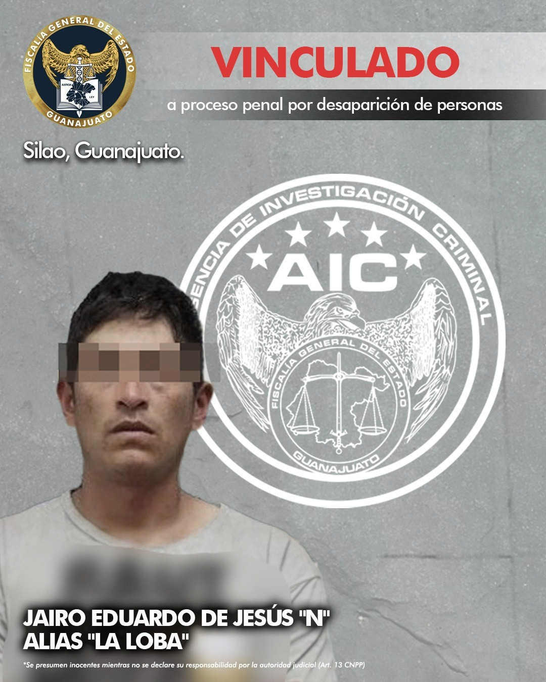 Silao, Gto. 14 de noviembre de 2024.- La Fiscalía de Guanajuato logró identificar y capturar a JAIRO EDUARDO DE JESÚS «N» alias «LA LOBA», acusado de la desaparición de un joven, en el municipio de Silao.