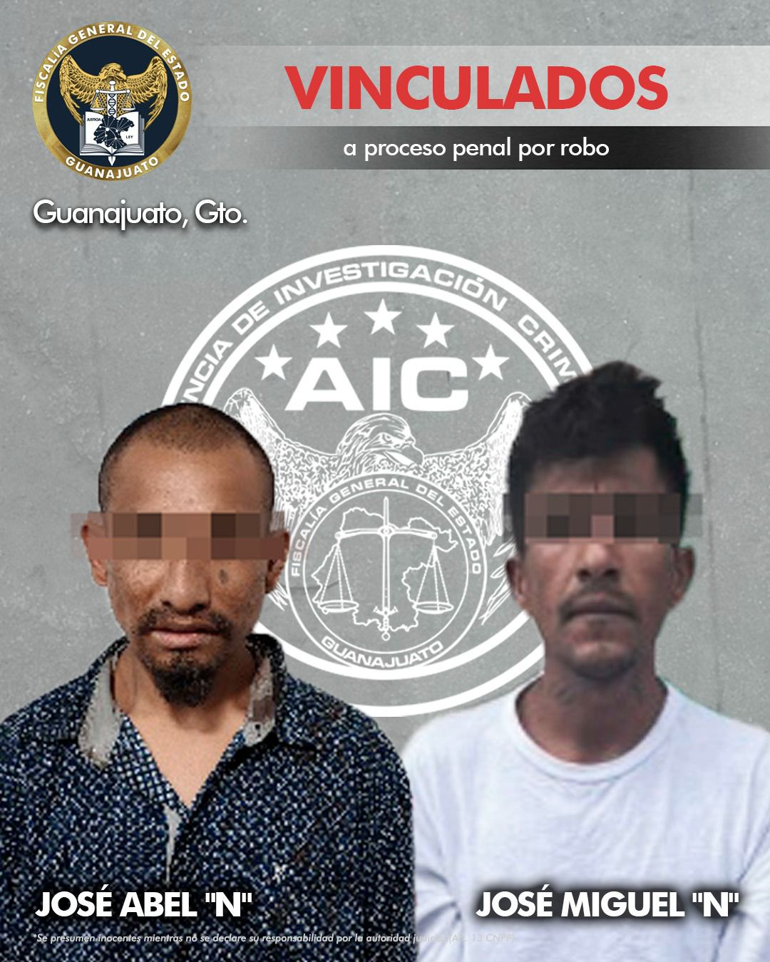 Guanajuato, Gto. 16 de noviembre de 2024.- La Fiscalía de Guanajuato cumplimentó orden de aprehensión por el delito de robo en contra de JOSÉ ABEL “N” y JOSÉ MIGUEL “N”, inculpados por asaltar a jóvenes en la ciudad de Guanajuato.