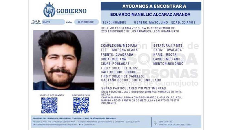 Eduardo Manellic había desaparecido el pasado 15 de noviembre al salir de su casa ubicada en Bosques de los Naranjos.