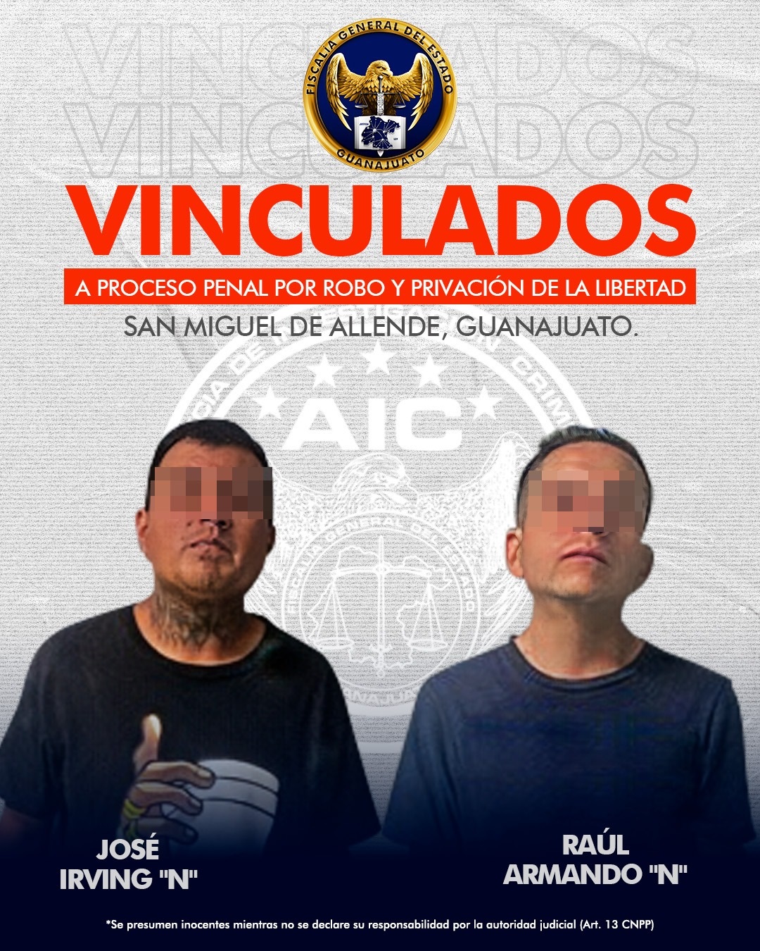 Vinculan a proceso penal a JOSÉ IRVING “N” y RAÚL ARMANDO “N” en San Miguel de Allende