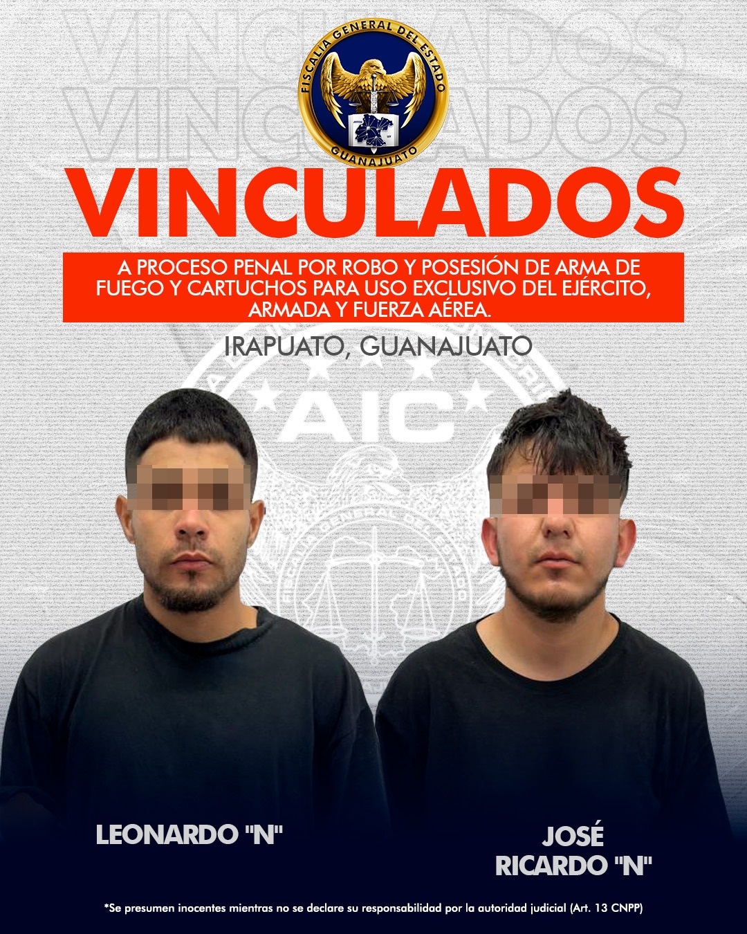 Vinculación a proceso penal de LEONARDO «N» y JOSÉ RICARDO «N» por robo y posesión de arma de fuego y cartuchos de uso exclusivo del Ejército, Armada y Fuerza Aérea