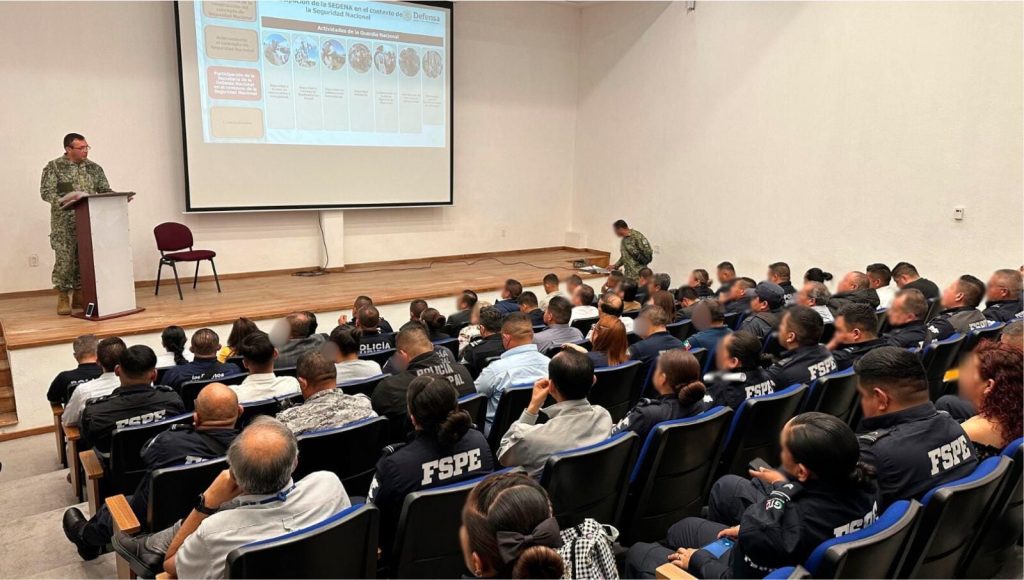 Al encabezar un encuentro con Titulares de Seguridad Pública de Municipios y personal Operativo de la Secretaría de Seguridad y Paz, en donde impartió la conferencia “Seguridad Nacional”, el coronel del Arma Blindada del Estado Mayor dijo que todos, en los ámbitos y facultades que les corresponden, son responsables de que haya seguridad, paz y orden en México.