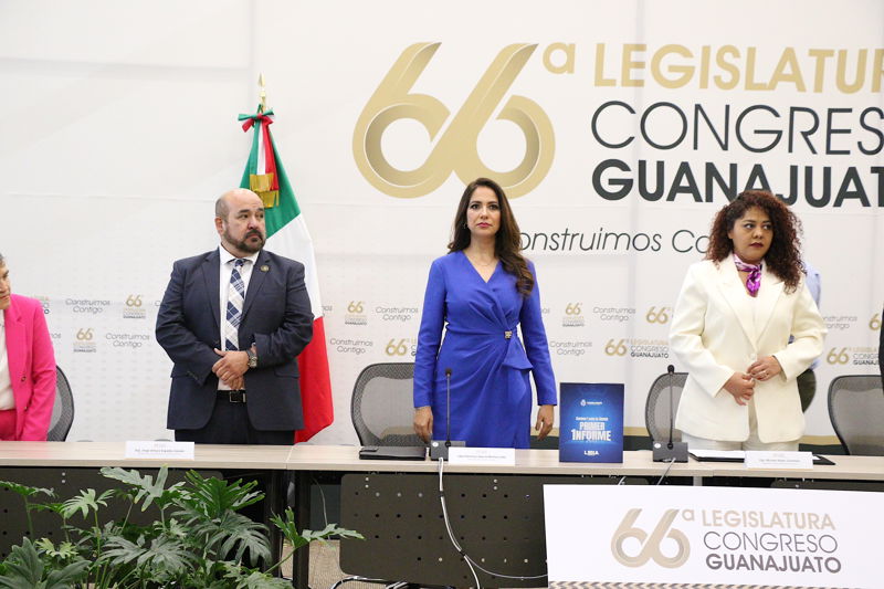 En su intervención, la gobernadora del estado, Libia Dennise García Muñoz Ledo, externó que era un gusto estar en el recinto que refleja la pluralidad de Guanajuato e indicó que venía a cumplir con la obligación y el mandato legal de refrendar el compromiso de su gobierno, el gobierno de la gente, con la transparencia y la rendición de cuentas.