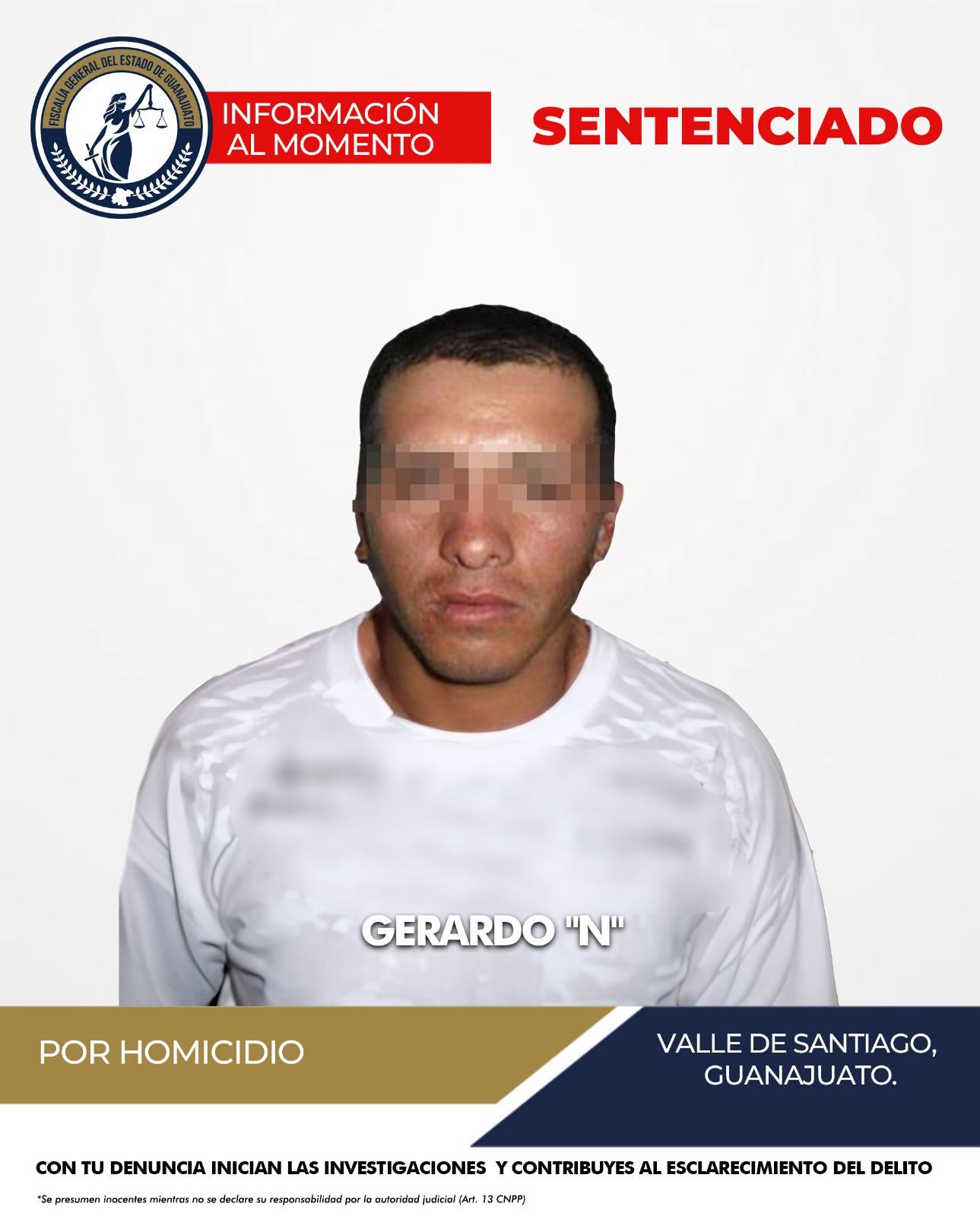 FGEG: Sentencian a 17 años y 6 meses de prisión a Gerardo “N” por homicidio en Valle de Santiago