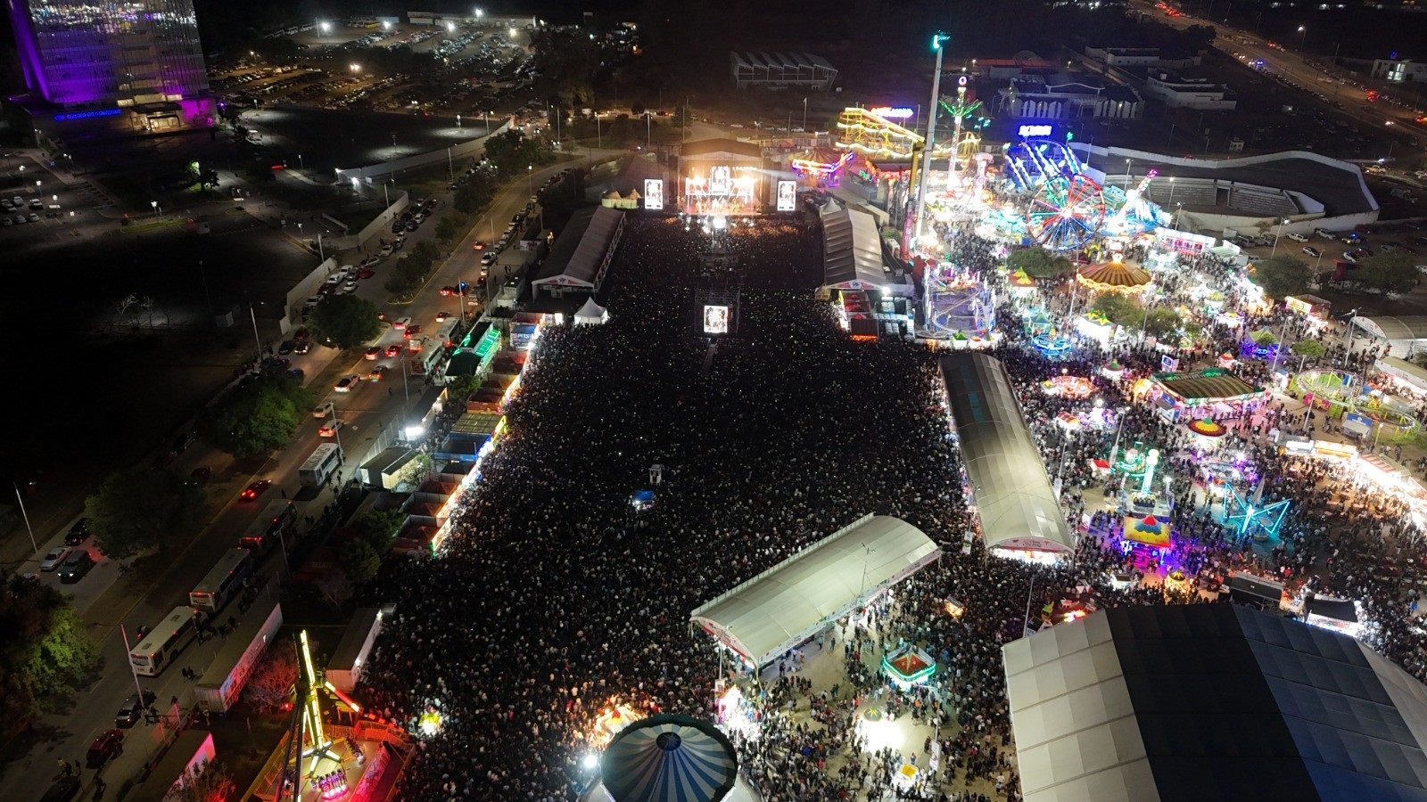 Irapuato, Gto. 23 de marzo 2025.- El récord de asistencia a una presentación de un solo artista en la historia de la Feria de las Fresas de Irapuato, se rompió la noche del sábado 22 de marzo, al superar los 65 mil asistentes en el concierto de La Arrolladora Banda Limón.