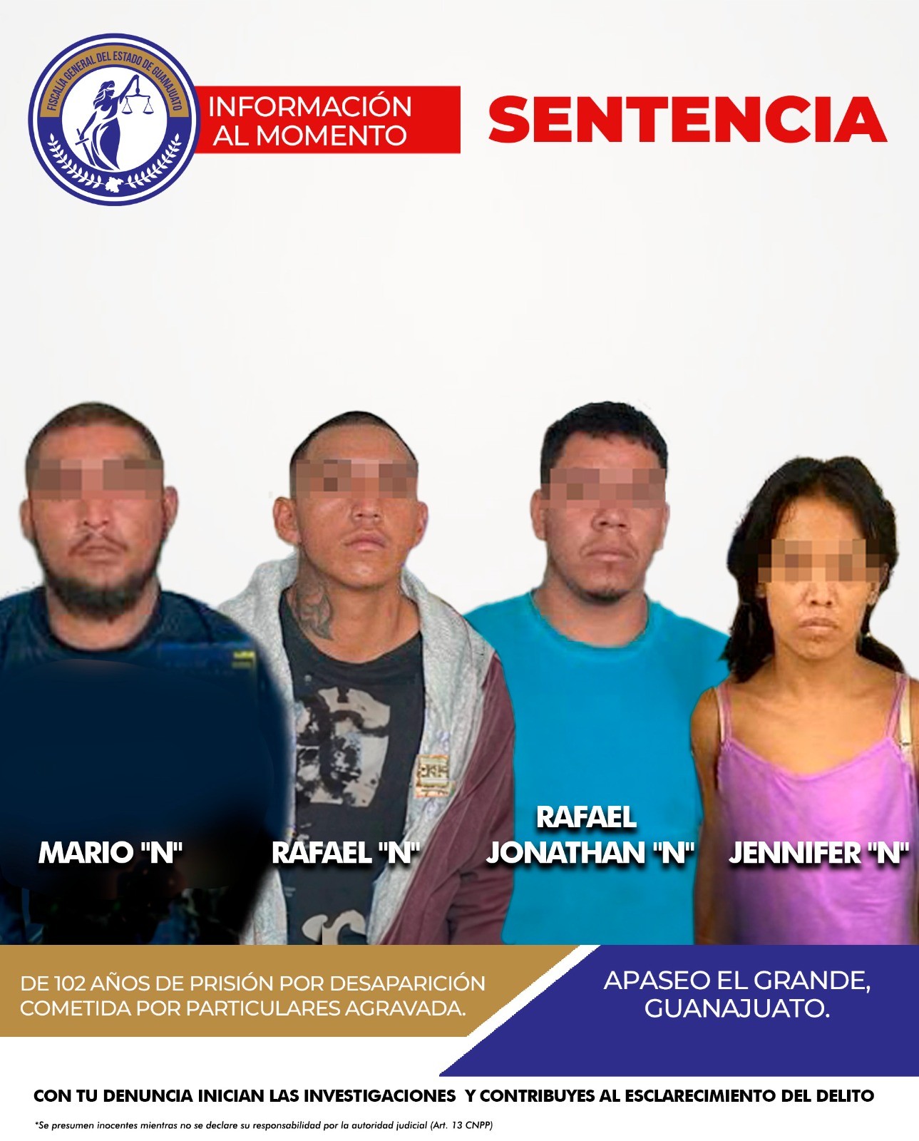 Sentencia de 102 años de prisión por desaparición cometida por particulares agravada en Apaseo El Grande