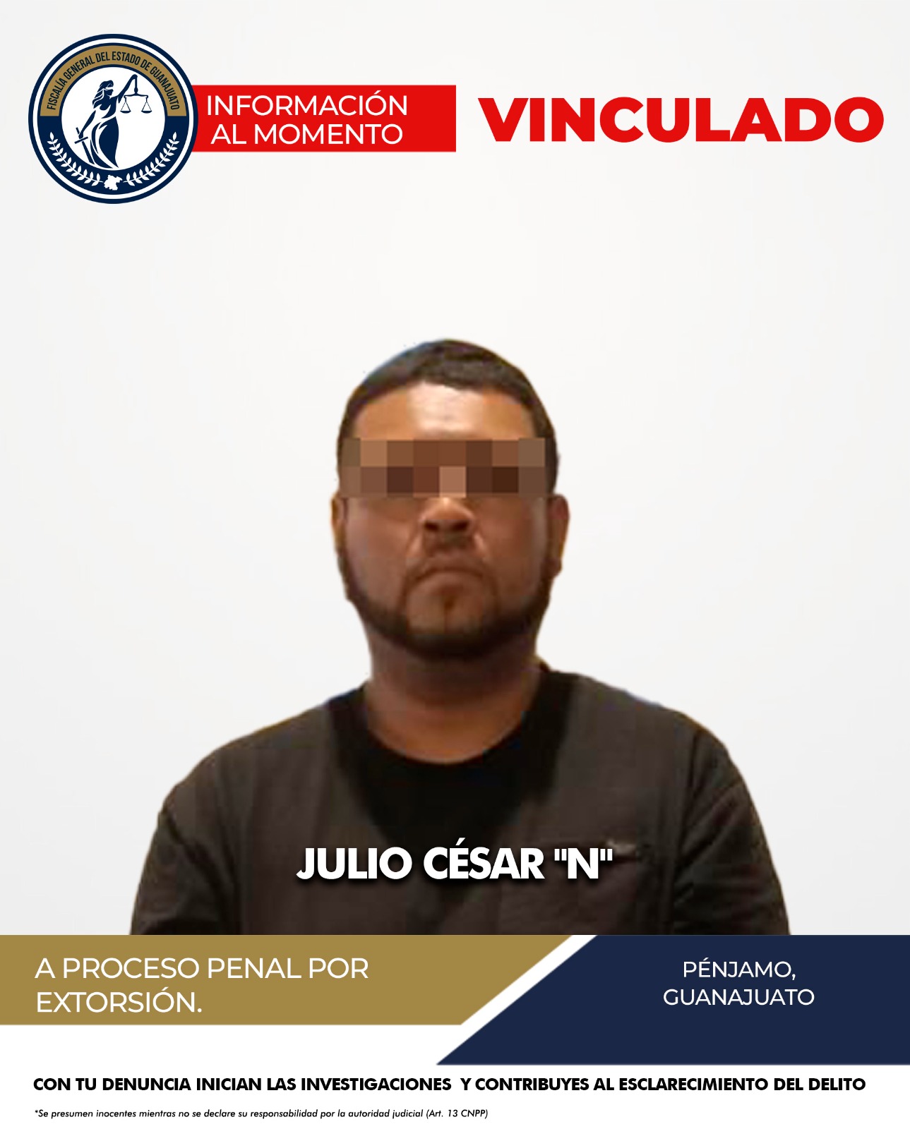 probable responsable del delito de extorsión en el municipio de Pénjamo.