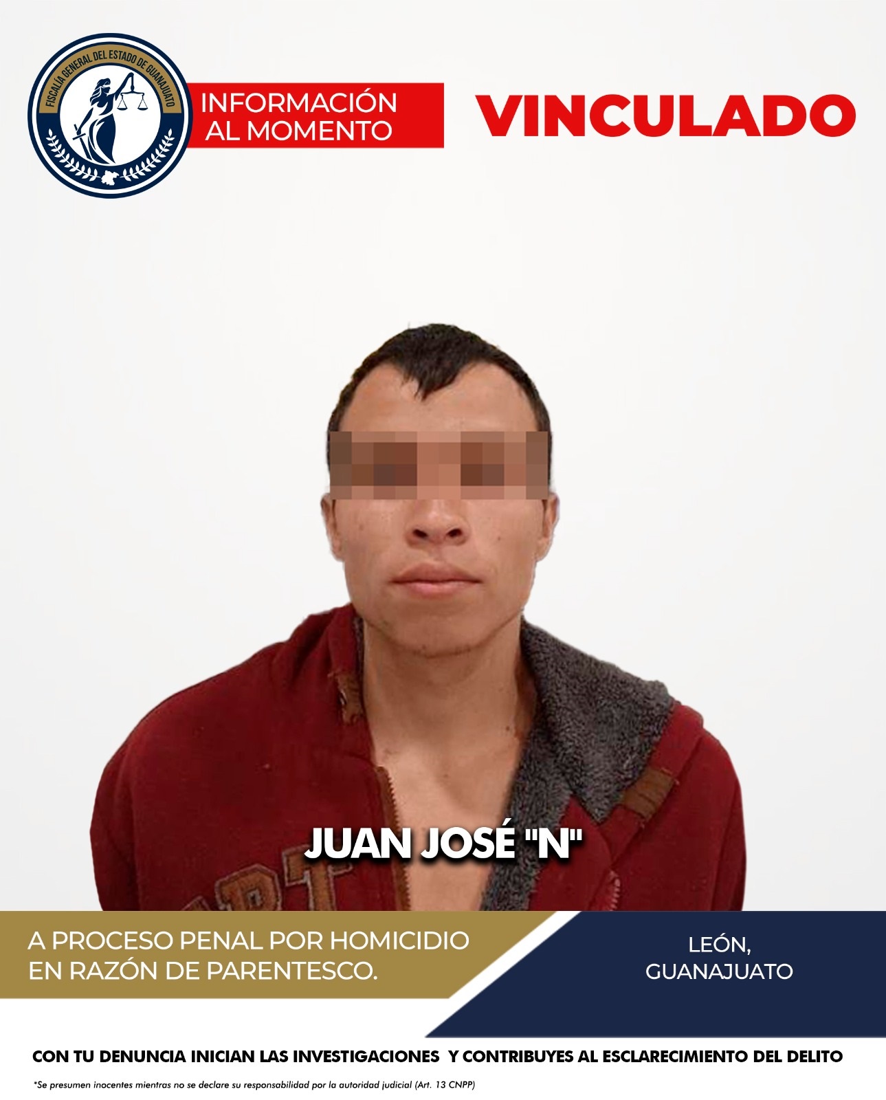 JUAN JOSÉ “N” enfrenta un proceso penal por su probable responsabilidad en el delito