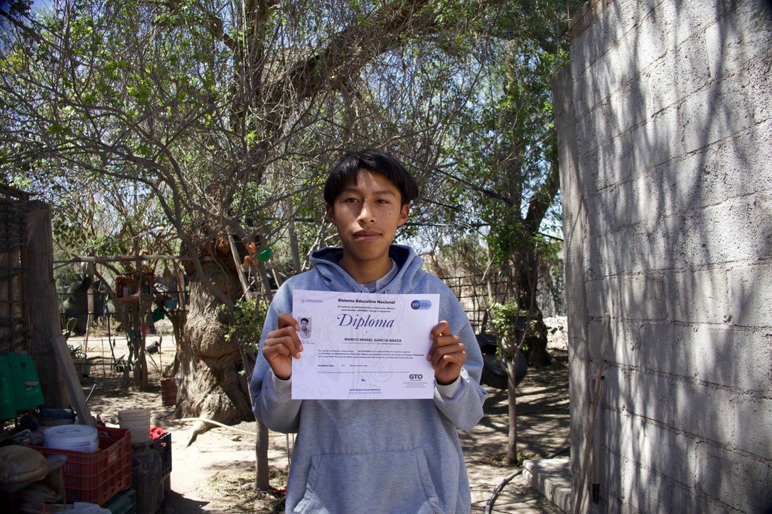 Marco tiene 15 años, él concluyó la primaria y secundaria con el Instituto de Alfabetización y Educación Básica para Adultos (INAEBA), como parte de los esfuerzos que en 20 años han permitido que casi un millón de personas en Guanajuato aprendan a leer, escribir y concluyan su educación básica.