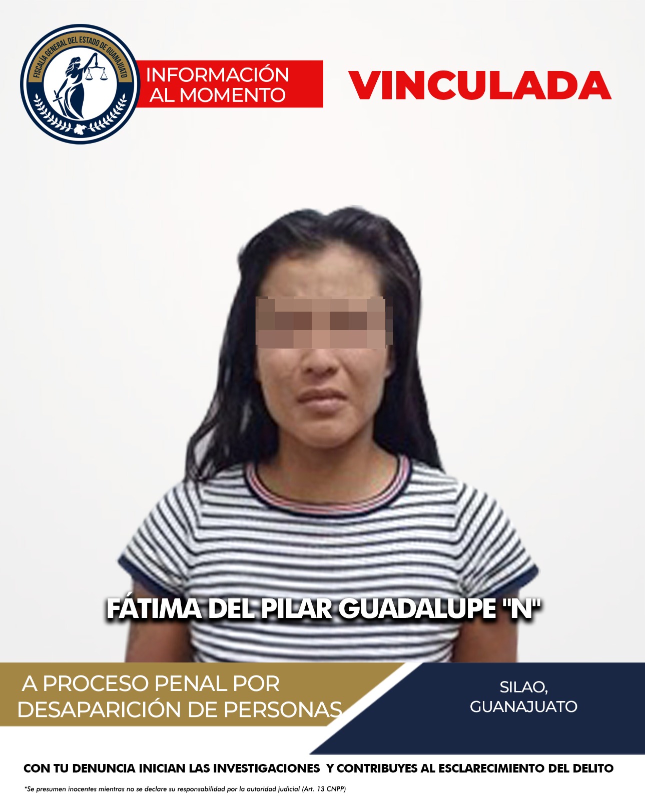 como FÁTIMA DEL PILAR GUADALUPE “N”, presuntamente implicada
