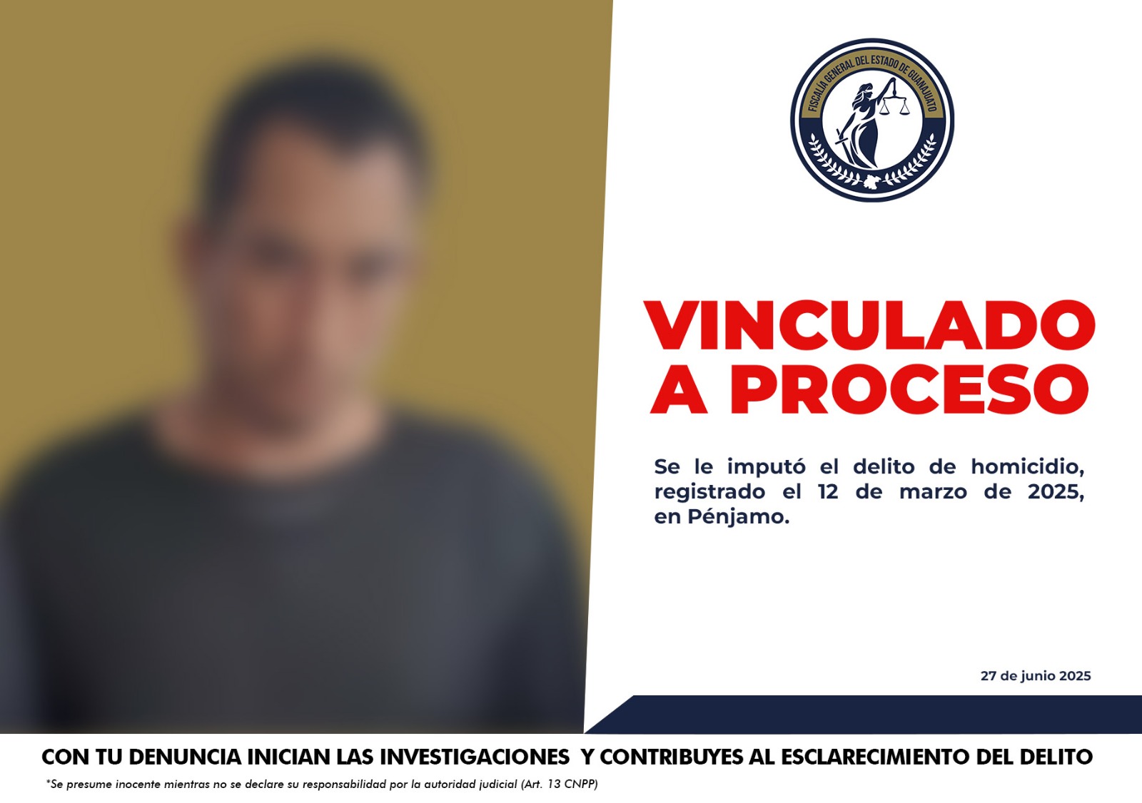 Presunto homicida es capturado por crimen en Pénjamo