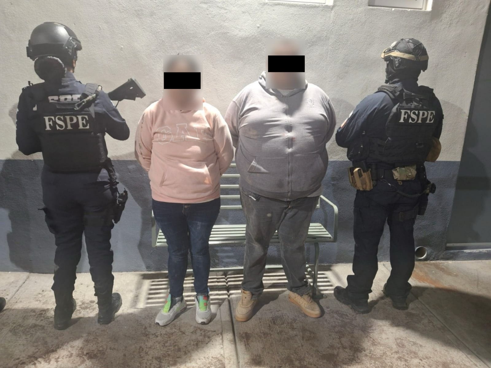 Integrantes de las Fuerzas de Seguridad Pública del Estado (FSPE) detectaron a una pareja a bordo de una motocicleta sin placas ni equipo de protección, por lo que se realizó una revisión preventiva.