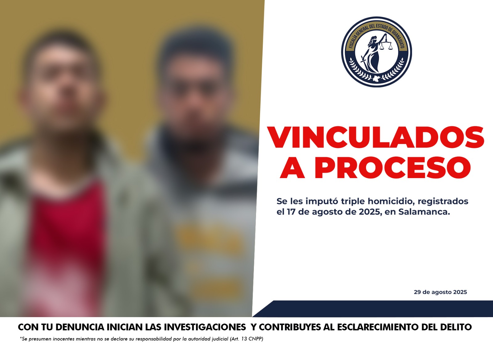 “N” y LUIS GUILLERMO “N”, en un triple homicidio perpetrado en esta