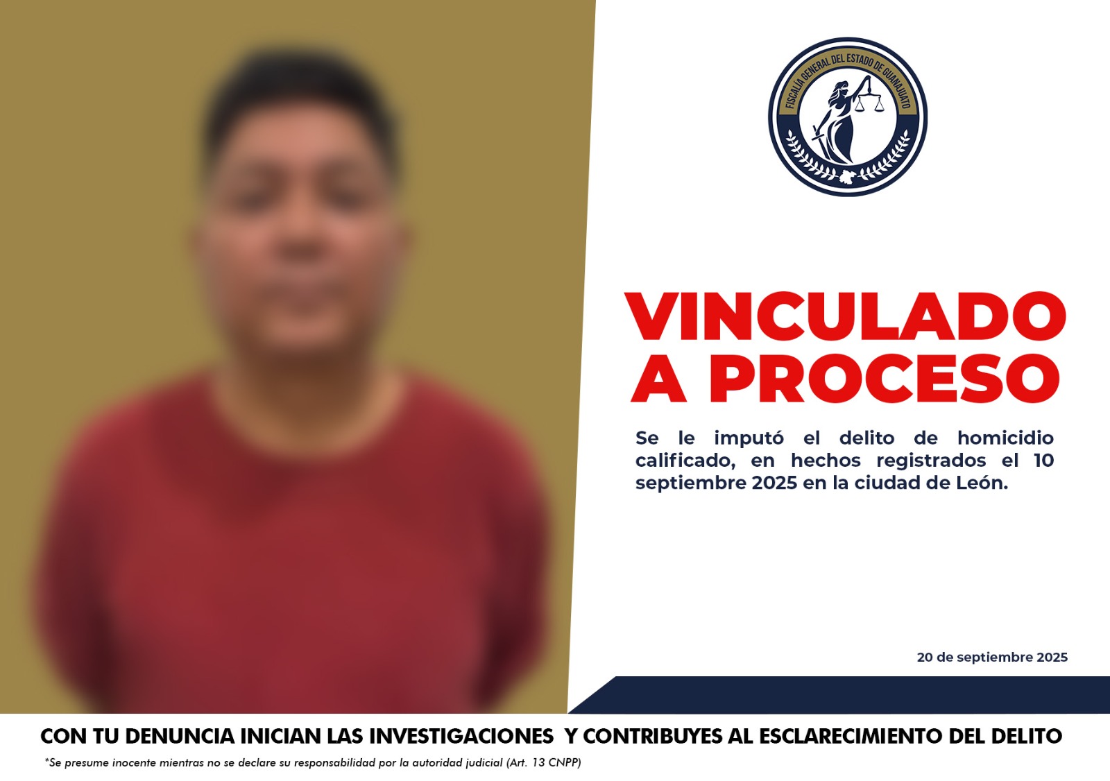 La Fiscalía General del Estado de Guanajuato informa que fue vinculado a