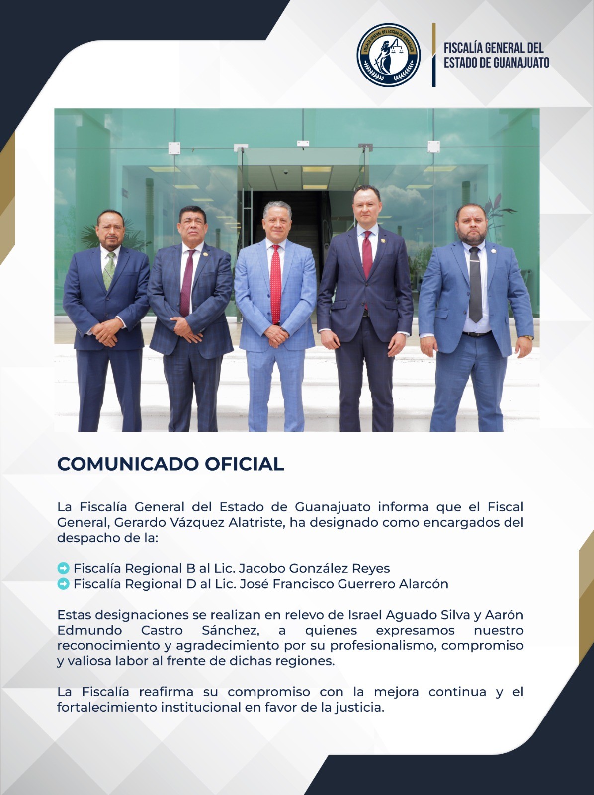 GuanajuatoNombramientos en la Fiscalía General del Estado soledad3 días atrás00 minutos Navegación de entradas Anterior: Inicia Semana Tecnológica ITESI y Foro «Emprende y Conecta»Siguiente: La Fiscalía detiene a 4 hombres armados con droga en Irapuato