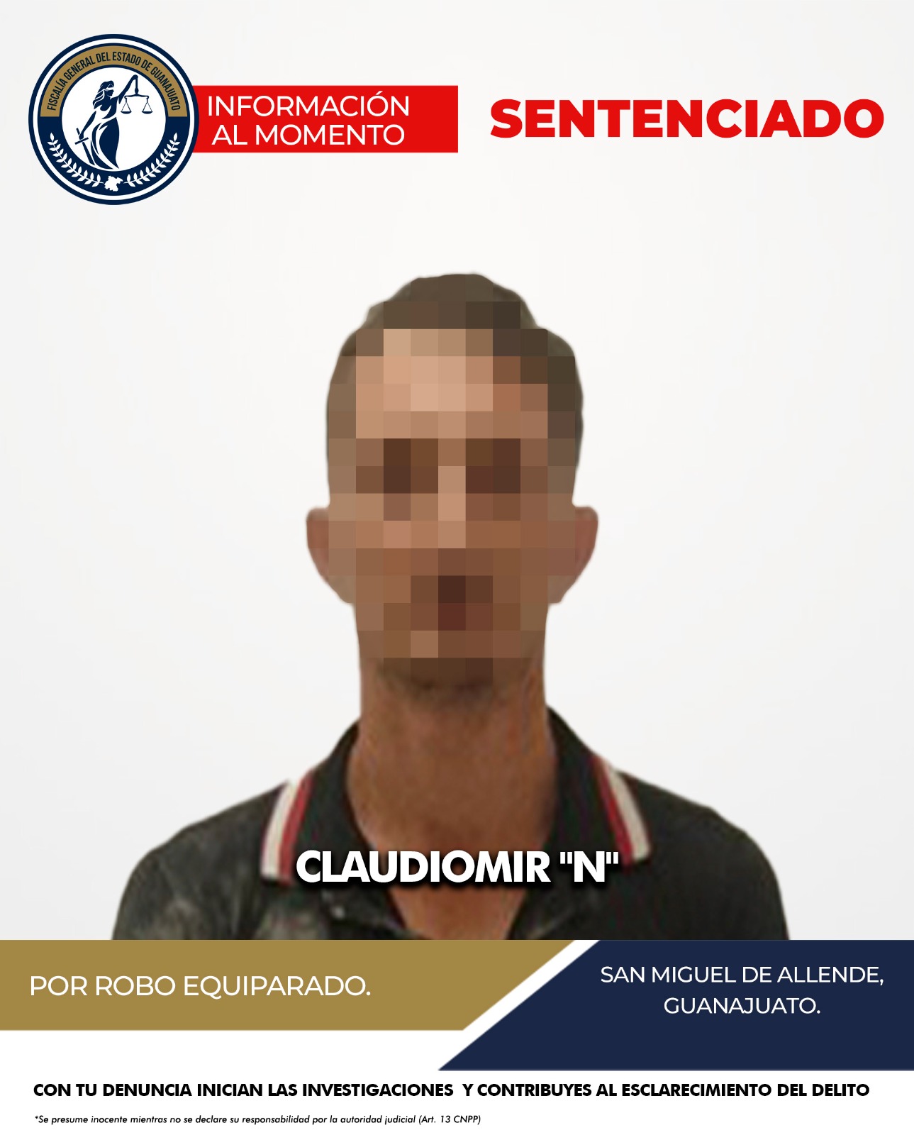audiencia, en contra de CLAUDIOMIR “N”, por el delito de robo equiparado.