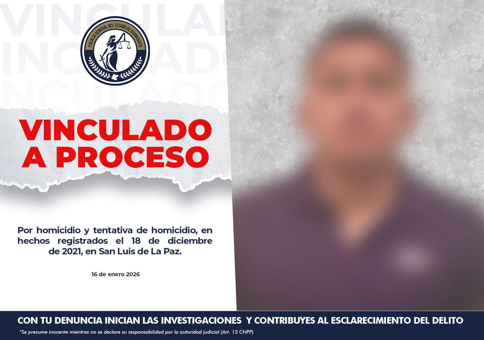 Vinculan a sujeto por homicidio y tentativa de homicidio en San Luis de la Paz