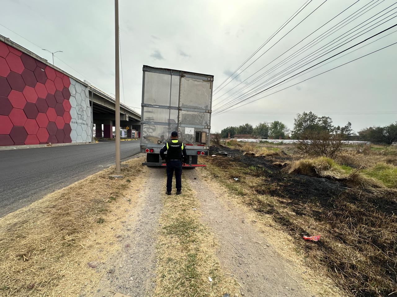 En el sitio se localizó una caja refrigerada, marca Utility, modelo 2005, fuera de la cinta de rodamiento, en aparente estado de abandono y con indicios de desvalijamiento.