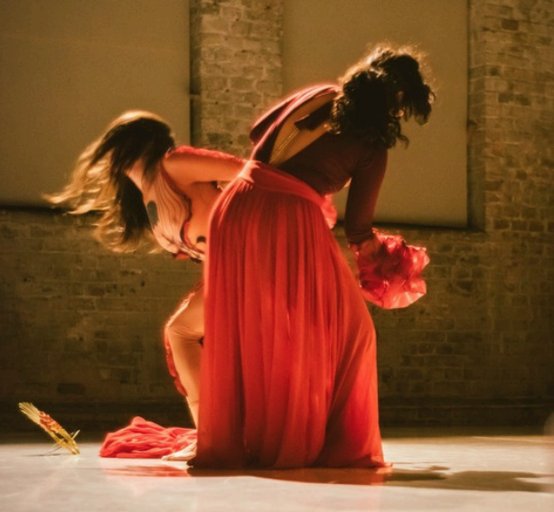 La composición conjunta del vestuario, los rituales y el movimiento genera una declaración visual de gran fuerza escénica, que apela al imaginario arquetípico y a una sabiduría ancestral femenina e intuitiva. Se trata de un dueto que encarna la experiencia visceral del despojo como vía para invocar una fuerza vital profunda y esencial.