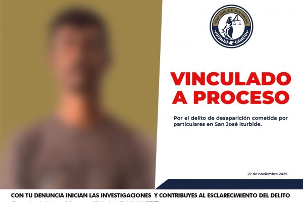 La Fiscalía General del Estado cumplimentó una orden de aprehensión en reclusión contra de JOSÉ JAVIER “N”, conocido como “el compa José”, imputado por el delito de desaparición cometida por particulares en Guanajuato capital, cuya víctima fue localizado posteriormente sin vida en Silao. Una vez aprehendido, fue llevado ante el Ministerio Público y luego ante la autoridad jurisdiccional para la celebración de la audiencia inicial. De acuerdo con la carpeta de investigación, los hechos se remontan al 5 de abril de 2023, cuando el agresor provisto de un arma de fuego irrumpió en el domicilio del ofendido en la colonia Lomas del Padre, donde disparó al suelo, cerca de la víctima para sacarlo por la fuerza y subirlo a un vehículo, alejándose de inmediato del lugar. Días después, el cuerpo de la víctima fue encontrado sin vida en una zona cerril en las inmediaciones de la comunidad La Calaverna, en Silao. La necropsia determinó que murió a causa de un traumatismo profundo de tórax, y su identidad fue confirmada mediante estudios genéticos. Durante la audiencia, la Jueza determinó que existían elementos suficientes para vincular a proceso a JOSÉ JAVIER “N” por el delito de desaparición cometida por particulares. Asimismo, impuso como medida cautelar la prisión preventiva por todo el tiempo que dure el proceso