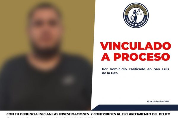 La Fiscalía General del Estado de Guanajuato informa a la ciudadanía que, derivado de un trabajo de investigación exhaustivo y coordinado desde los primeros momentos del lamentable hecho, se logró identificar y capturar a JOSÉ MIGUEL “N”, alias “el milton”, considerado generador de violencia en los municipios de San José de Iturbide, Celaya y Cortazar, y presunto responsable de un homicidio registrado el 20 de noviembre de 2025, en San Luis de la Paz. Entre las 16:30 y 17:00 horas del día citado, la víctima circulaba en su vehículo por la carretera San Luis de la Paz – Dolores Hidalgo, a la altura de la comunidad El Palomar, tras haber concluido su jornada laboral. En ese momento, el imputado la interceptó con la intención de despojarla de la unidad, realizando detonaciones de arma de fuego que le ocasionaron lesiones graves, mismas que posteriormente derivaron en su fallecimiento. Desde que se tuvo conocimiento de la noticia criminal, la Fiscalía desplegó acciones, con la intervención de agentes del Ministerio Público, peritos y agentes de investigación. Este despliegue permitió reunir indicios, testimonios y evidencia técnica que llevó a la identificación y localización de «el milton», dedicado al asalto con lujo de violencia de vehículos de alta gama, quien fue capturado con orden de aprehensión durante un operativo ministerial. La solidez de los datos de prueba llevó al órgano jurisdiccional a determinar la vinculación a proceso de JOSÉ MIGUEL “N” por su probable participación en el delito de homicidio, continuando la causa penal en la etapa procesal correspondiente.