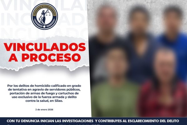 Tras una agresión con armas de fuego contra agentes de Investigación Criminal en Silao, CRISTIAN “N”, LAMBERTO “N”, WILLIAM ALEXIS “N”, ANTONIO “N” Y ADWING ISAÍ “N”, fueron vinculados a proceso, luego de que el Ministerio Público acreditó con pruebas su probable responsabilidad en los delitos de homicidio calificado en grado de tentativa en agravio de servidores públicos, así como por delitos de posesión de armas de fuego de uso exclusivo del Ejército y delitos contra la salud. Los hechos ocurrieron el pasado 29 de diciembre de 2025, alrededor de las 15:00 horas, en la colonia Noria de Sopeña. Durante labores de investigación, los agentes detectaron a dos sujetos realizando una presunta transacción de narcóticos en la calle Pirul. Al verse sorprendidos, los sospechosos corrieron hacia el inmueble, desde donde iniciaron una agresión con armas de fuego contra los agentes, quienes se cubrieron para evitar los disparos. Tras el arribo de refuerzos y la posterior rendición de los agresores dentro del domicilio, los agentes lograron la detención de los cinco individuos mediante el uso racional de la fuerza. En el lugar fueron aseguradas dos motocicletas, un inmueble, envoltorios con droga, además de dos armas de fuego cortas y una larga. Peritajes de balística forense revelaron que las armas están relacionadas en recientes eventos delictivos ocurridos en los municipios de Silao e Irapuato. En audiencia inicial, el Juez calificó de legal la detención y dictó auto de vinculación a proceso por el delito de tentativa de homicidio. Asimismo, se vinculó a los imputados por la posesión de armas exclusivas y posesión de drogas con fines de comercio, declinando la competencia a la autoridad correspondiente.
