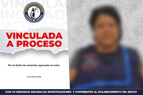 La Fiscalía General del Estado de Guanajuato informa que, como resultado de una investigación integral y en desarrollo, se logró la vinculación a proceso de dos personas por el delito de extorsión agravada, relacionadas con hechos ocurridos el 19 de noviembre de 2025, en la colonia Colinas del Carmen, en el municipio de León. En un primer momento, la Fiscalía dio a conocer la captura y vinculación a proceso de JONATHAN MIGUEL “N”, quien se ostentaba falsamente como propietario de inmuebles y se hacía pasar por “licenciado”, con el objetivo de despojar a personas de su patrimonio mediante amenazas y violencia psicológica. De acuerdo con la investigación inicial, el imputado se presentó en un domicilio rentado, donde el arrendatario encontró el portón cerrado con cadenas y un candado, además de un letrero con la leyenda “propiedad asegurada”. En ese contexto, exigió el desalojo inmediato del inmueble y amenazó a la víctima con represalias físicas, además de exigir el pago de una cantidad millonaria de dinero, asegurando contar con respaldo institucional y pertenecer a un grupo delictivo. La denuncia oportuna de la víctima permitió a la Fiscalía activar de inmediato las acciones ministeriales, acreditándose que dichas conductas no correspondían a ninguna diligencia legal, por lo que se configuró el delito de extorsión agravada. Con los datos de prueba reunidos, se obtuvo la orden de aprehensión correspondiente y un juez determinó su vinculación a proceso, imponiendo la prisión preventiva como medida cautelar. SEGUNDA DETENCIÓN DERIVADA DE LA MISMA INVESTIGACIÓN Como resultado del avance de la misma carpeta de investigación, la Fiscalía logró establecer la probable participación de JUANA ARACELI “N”, quien habría intervenido de manera conjunta en los hechos de extorsión cometidos bajo el mismo esquema delictivo. Tras obtener la orden de aprehensión en su contra, fue detenida y presentada ante la autoridad judicial, donde un juez determinó su vinculación a proceso por el delito de extorsión agravada, imponiendo también la prisión preventiva durante el desarrollo de la investigación complementaria. Con estas acciones, la Fiscalía General del Estado de Guanajuato informa que las personas directamente identificadas hasta el momento se encuentran vinculadas a proceso; no obstante, la investigación continúa su curso, con el objetivo de identificar a posibles más víctimas o a otras personas involucradas en estos hechos. La Fiscalía exhorta a la ciudadanía que haya sido víctima de conductas similares a presentar su denuncia, ya que la información aportada es fundamental para fortalecer las investigaciones y evitar que estos delitos continúen afectando a más familias. 📞 Denuncia en: 800 DNUNCIA (368 6242) ProcurApp Mensaje de texto: 473 172 4444 Portal web de la Fiscalía Agencia del Ministerio Público más cercana
