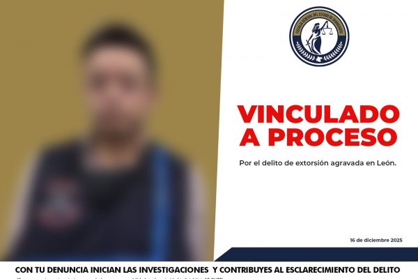 La Fiscalía General del Estado de Guanajuato informa que, como resultado de una investigación integral y en desarrollo, se logró la vinculación a proceso de dos personas por el delito de extorsión agravada, relacionadas con hechos ocurridos el 19 de noviembre de 2025, en la colonia Colinas del Carmen, en el municipio de León. En un primer momento, la Fiscalía dio a conocer la captura y vinculación a proceso de JONATHAN MIGUEL “N”, quien se ostentaba falsamente como propietario de inmuebles y se hacía pasar por “licenciado”, con el objetivo de despojar a personas de su patrimonio mediante amenazas y violencia psicológica. De acuerdo con la investigación inicial, el imputado se presentó en un domicilio rentado, donde el arrendatario encontró el portón cerrado con cadenas y un candado, además de un letrero con la leyenda “propiedad asegurada”. En ese contexto, exigió el desalojo inmediato del inmueble y amenazó a la víctima con represalias físicas, además de exigir el pago de una cantidad millonaria de dinero, asegurando contar con respaldo institucional y pertenecer a un grupo delictivo. La denuncia oportuna de la víctima permitió a la Fiscalía activar de inmediato las acciones ministeriales, acreditándose que dichas conductas no correspondían a ninguna diligencia legal, por lo que se configuró el delito de extorsión agravada. Con los datos de prueba reunidos, se obtuvo la orden de aprehensión correspondiente y un juez determinó su vinculación a proceso, imponiendo la prisión preventiva como medida cautelar. SEGUNDA DETENCIÓN DERIVADA DE LA MISMA INVESTIGACIÓN Como resultado del avance de la misma carpeta de investigación, la Fiscalía logró establecer la probable participación de JUANA ARACELI “N”, quien habría intervenido de manera conjunta en los hechos de extorsión cometidos bajo el mismo esquema delictivo. Tras obtener la orden de aprehensión en su contra, fue detenida y presentada ante la autoridad judicial, donde un juez determinó su vinculación a proceso por el delito de extorsión agravada, imponiendo también la prisión preventiva durante el desarrollo de la investigación complementaria. Con estas acciones, la Fiscalía General del Estado de Guanajuato informa que las personas directamente identificadas hasta el momento se encuentran vinculadas a proceso; no obstante, la investigación continúa su curso, con el objetivo de identificar a posibles más víctimas o a otras personas involucradas en estos hechos. La Fiscalía exhorta a la ciudadanía que haya sido víctima de conductas similares a presentar su denuncia, ya que la información aportada es fundamental para fortalecer las investigaciones y evitar que estos delitos continúen afectando a más familias. 📞 Denuncia en: 800 DNUNCIA (368 6242) ProcurApp Mensaje de texto: 473 172 4444 Portal web de la Fiscalía Agencia del Ministerio Público más cercana