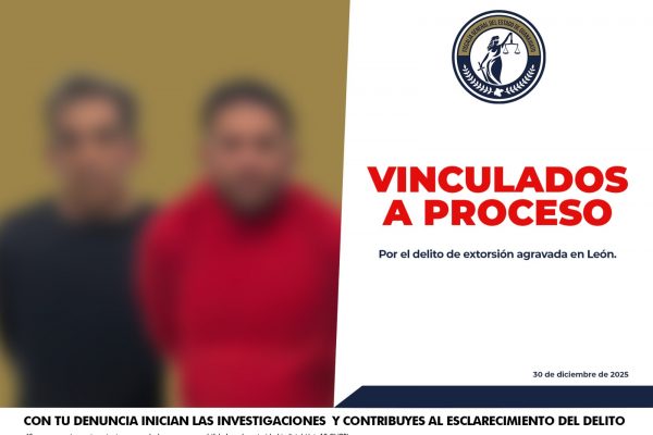 En solo cinco días, tras una denuncia ciudadana, la Fiscalía Regional “A” desarticuló un acto de extorsión en León; los imputados podrían enfrentar hasta 37 años de prisión. La Fiscalía General del Estado de Guanajuato informa a la sociedad sobre la detención y vinculación a proceso de CRISTÓBAL “N” y BRANDON DANIEL “N”, imputados por el delito de extorsión agravada, cometido en la ciudad de León. Este resultado constituye el primer caso en Guanajuato judicializado con éxito tras la entrada en vigor, en el presente mes de diciembre, de la nueva Ley General para Prevenir, Investigar y Sancionar los Delitos en Materia de Extorsión, un marco legal que fortalece la protección a las víctimas y establece sanciones más severas contra quienes atentan contra la tranquilidad y el patrimonio de las familias. La investigación inició a partir de una denuncia ciudadana presentada por hechos ocurridos el 9 de diciembre de 2025, cuando los imputados, portando armas de fuego y a bordo de vehículos, arribaron al domicilio de la víctima para exigir, mediante violencia e intimidación, el pago de una cantidad de dinero bajo el argumento de una supuesta deuda. Los agresores se ostentaron como integrantes de un grupo delictivo y profirieron amenazas de muerte contra la víctima y sus familiares, estableciendo un plazo para la entrega del dinero. Ante la gravedad de los hechos, la Fiscalía activó de inmediato protocolos especializados de atención y protección a víctimas, al tiempo que conformó un equipo multidisciplinario de investigación. A través de labores de inteligencia y un operativo estratégico de la Agencia de Investigación Criminal, se logró la detención en flagrancia de los imputados cuando intentaban consumar el cobro de la extorsión, asegurándose dinero en efectivo producto del ilícito. Con base en los datos de prueba recabados, el Ministerio Público presentó a los detenidos ante un Juez, quien calificó como legal la detención y resolvió vincularlos a proceso por extorsión agravada, imponiendo como medida cautelar la prisión preventiva, mientras se desarrolla la investigación complementaria. Este caso refleja la capacidad de respuesta inmediata, coordinación institucional y eficacia operativa de la Fiscalía de Guanajuato, así como el impacto directo que tiene la denuncia ciudadana en la protección de la sociedad y el combate frontal a la extorsión. La Fiscalía General del Estado de Guanajuato refrenda su compromiso con la procuración de justicia, la seguridad y la defensa de las víctimas, y exhorta a la ciudadanía a denunciar este delito de manera segura y confidencial. 📞 Denuncia la extorsión: 800 DNUNCIA (368 62 42) 📱 ProcurApp 🌐 Portal web de la Fiscalía 💬 Mensaje de texto al 473 172 4444 🏢 Agencia del Ministerio Público más cercana