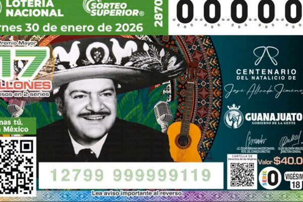 La Loteria Nacional realizará su primer Sorteo en Territorio del 2026 en Dolores Hidalgo, Guanajuato, para celebrar el Centenario del Natalicio de José Alfredo Jiménez, uno de los compositores más emblemáticos de México y una figura esencial en la identidad musical del país. Este homenaje se desarrolla en el marco del Sorteo Superior No. 2870 que se realizará el próximo viernes 30 de enero del presente año y estará encabezado por la directora general de Lotería Nacional, Olivia Salomón; la gobernadora del Estado de Guanajuato, Libia Dennise García Muñoz Ledo, y el presidente municipal de Dolores Hidalgo, Adrián Hernández Alejandri. Este ejercicio de recorrer el territorio que lleva a cabo Lotería Nacional, atiende la instrucción de la presidenta Claudia Sheinbaum Pardo, de “menos escritorio, más territorio” y el objetivo es acercar a la ciudadanía los 255 años de historia de la institución, pero principalmente llevar esta tradición a diferentes ciudades del país y compartir la experiencia de presenciar un sorteo en vivo. Cabe señalar que en 2025, Lotería Nacional realizó esta misma dinámica, iniciando en Acapulco, Guerrero con los 90 años de la Quebrada. Además, llegó a la Secretaría de Economía para impulsar el proyecto “Hecho en México”; en la capital Poblana con el sorteo del 5 de Mayo; Chiapas, para distinguir a la Mujer Indígena con La Reina Roja; Oaxaca, que se realizó en el marco de la Guelaguetza; en el Palacio Postal de la capital del país se llevó a cabo el Sorteo México con M de Migrante; en Tlaxcala, para celebrar 500 años de su fundación; y en el Puerto de Veracruz para conmemorar 200 años de Independencia en el Mar.