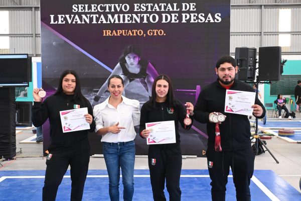 Participan 46 deportistas · En abril Irapuato será sede del Macroregional de Levantamiento de Pesas Irapuato, Gto. 22 de marzo 2025.- El Gimnasio Paralímpico de Irapuato fue sede del Selectivo Estatal de Levantamiento de Pesas, donde atletas de diferentes edades demostraron su fuerza y técnica en busca de un lugar en la siguiente fase de la competencia. Janet Estrada Ponce, directora de la Comisión Municipal del Deporte y Atención a la Juventud, reveló que Irapuato será la sede nacional del Macroregional de Levantamiento de Pesas, la siguiente fase de esta competencia. “En este evento estatal participan 46 deportistas de diversas ciudades de Guanajuato, que están buscando su pase para lo que es la siguiente fase del Macroregional. El Macroregional se llevará a cabo del 10 al 12 de abril y estamos muy contentos porque Irapuato fue seleccionado como sede nacional”, refirió. Irapuato tiene grandes representantes en esta disciplina, como: María José Hernández Verdín, Tania Hernández Delgado y Pablo Medina Contreras, quienes recibieron un reconocimiento por parte de la Asociación de Levantamiento de Pesas de Guanajuato, por su participación en el Panamericano Junior en la Habana Cuba, clasificatoria a los juegos Panamericanos Junior Asunción 2025. “Es un orgullo representar a Irapuato, fue una experiencia muy agradable, la verdad me gustó mucho, conocí mucho y, sobre todo, tuve la oportunidad de demostrar que he estado entrenando para ese evento, competí bien, di lo mejor de mí y se dio un buen resultado”, compartió María José Hernández quién logró medalla de bronce. Durante el evento estuvieron presente; Jesús Vega, presidente de la Asociación de Levantamiento Pesas de Guanajuato y Juan Vivanco Juárez, coordinador regional de CODE, destacaron la importancia de estos eventos deportivos en Irapuato, principalmente de halterofilia, que es un deporte que ha brindado grandes deportistas