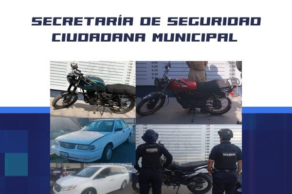 Durante el Operativo Pegaso, en coordinación con Guardia Nacional y FSPE, se aseguraron vehículos con reporte de robo vigente. Las acciones se realizaron mediante uso de tecnología, recorridos estratégicos y coordinación interinstitucional. Irapuato, Gto., a 7 de enero de 2026.– Como resultado de los recorridos de prevención, vigilancia y operativos estratégicos, la Secretaría de Seguridad Ciudadana Municipal (SSCM) logró la recuperación de cinco vehículos con reporte de robo, dos automóviles y tres motocicletas, así como la detención de cuatro personas presuntamente relacionadas con estos hechos, en distintos puntos del municipio. En la carretera Irapuato–Salamanca, colonia Exhacienda Buenavista, a través de los arcos carreteros se detectó un vehículo Honda blanco modelo 2011, con reporte de robo del 30 de diciembre de 2025, logrando la detención de Juan “N”, de 52 años, quien fue puesto a disposición de la autoridad competente. En Constituyentes esquina La Cosecha, colonia Las Trojes, fue asegurado un Nissan Tsuru blanco modelo 2007, localizado abandonado y con reporte de robo vigente del 31 de diciembre de 2025. Durante el Operativo Pegaso, en Agricultores esquina Avellano, colonia Los Fresnos, se aseguró una motocicleta Italika FT-125 color rojo, con reporte de robo del 26 de diciembre de 2025, y se detuvo a Edwin “N”, de 21 años. En Primero de Mayo esquina Ixtoc, colonia Tenerías de Irapuato, se detuvo a dos masculinos y se recuperó una motocicleta Italika DM 250, relacionada con un robo reportado al 911 el mismo día. El afectado reconoció plenamente el vehículo y presentó la denuncia correspondiente ante el Ministerio Público