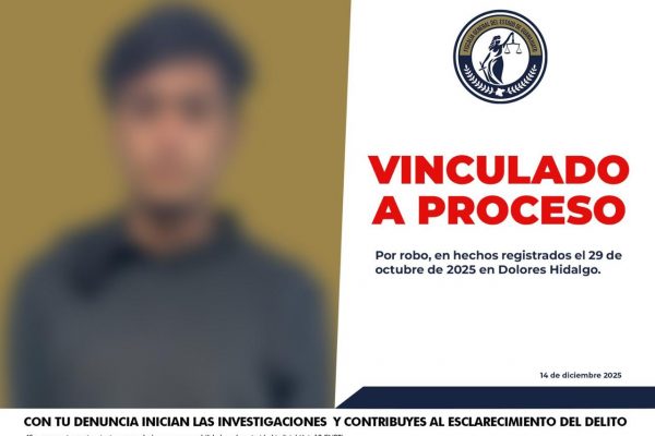 La Fiscalía General del Estado de Guanajuato logró que un Juez de Control dictara auto de vinculación a proceso en contra de JUAN “N”, por su probable participación en el delito de robo calificado, derivado de hechos ocurridos en el municipio de Dolores Hidalgo. De acuerdo con la investigación, el 29 de octubre de 2025, aproximadamente a las 03:35 horas, JUAN “N” ingresó de manera ilícita a un comercio dedicado a la venta de cervezas, sobre la carretera Dolores Hidalgo – San Miguel de Allende. Para acceder al establecimiento, el imputado dañó la chapa de la puerta y posteriormente se apoderó de diversos objetos, afectando el patrimonio de la persona ofendida. Tras la integración de datos de prueba, el Ministerio Público formuló imputación y solicitó la vinculación a proceso, misma que fue concedida por la autoridad judicial. Asimismo, el Juez impuso medida cautelar de prisión preventiva y ordenó la continuación de la investigación complementaria.